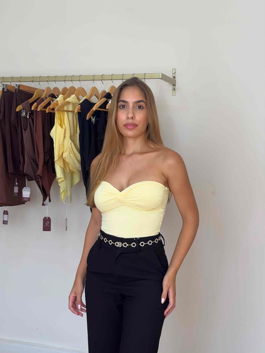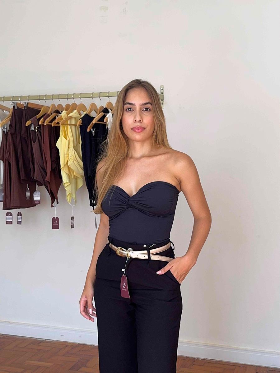 Com detalhe do nó franzido que dá todo um charme. Possui acabamento duplo, elástico abaixo do busto e nas costas, proporcionando uma ótima sustentação e caimento.