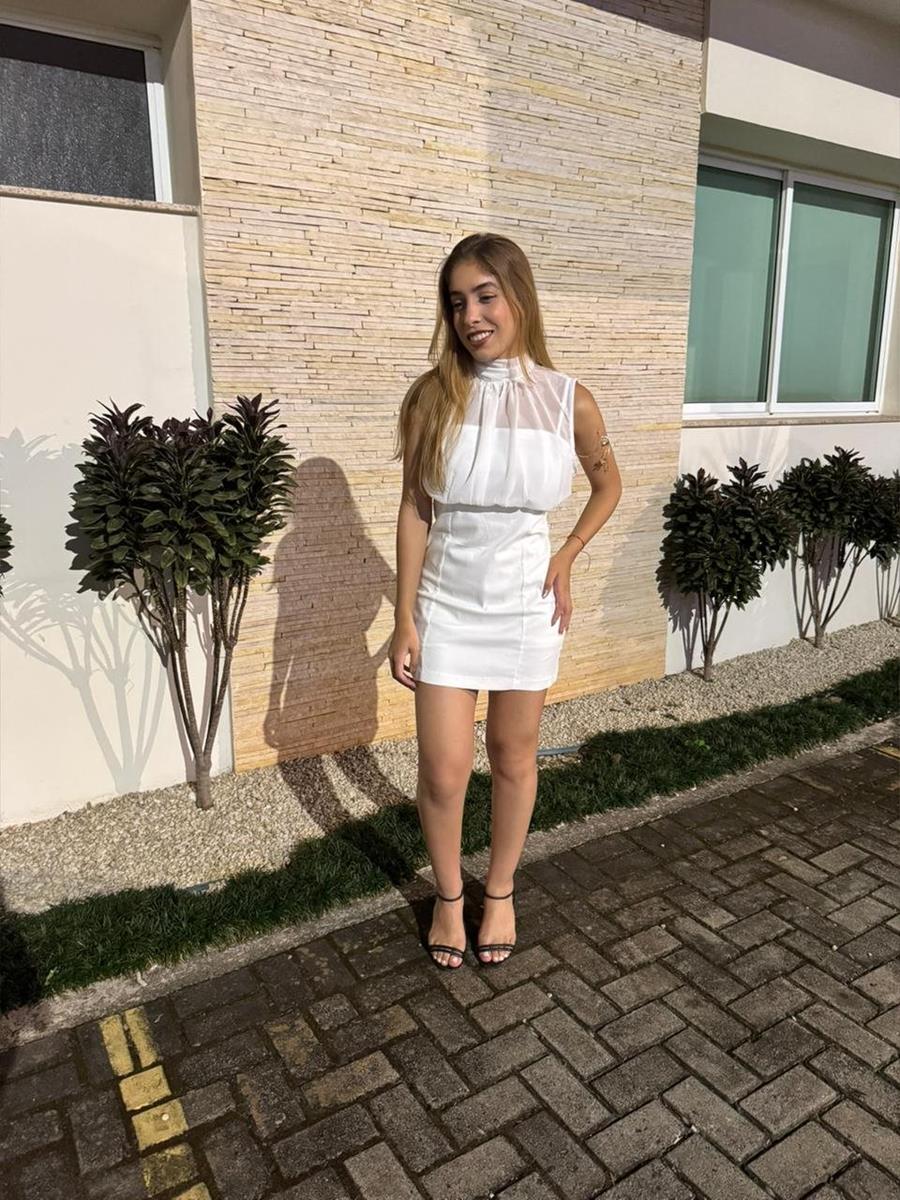 Com modelagem reta e caimento impecável, o acabamento em tule no busto e gola alta, adiciona um toque delicado, atual e feminino.